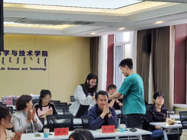 苏小波代表学院党委作了现场点评,他指出本次活动准备充分、主题鲜明,各参赛队伍表现优异,竞赛现场严肃紧张、团结活泼,体现了学院师生党员学习习近平新时代中国特色社会主义思想和新修订的《中国共产党纪律处分条例》的积极性和主动性,希望全院党员要把《中国共产党纪律处分条例》的学习继续融入日常生活工作中,进一步促进作风转变。结合当下正在推进的生物科学师范专业认证评建工作,他强调要切实将党纪学习教育和日常业务工作紧密相融,全院师生要继续巩固学习认证理念,增强认证工作的重视,积极做好专业认证的迎评工作。活动最后,苏小波书记和红雨院长共同为获奖队伍颁发了学校文创纪念品。