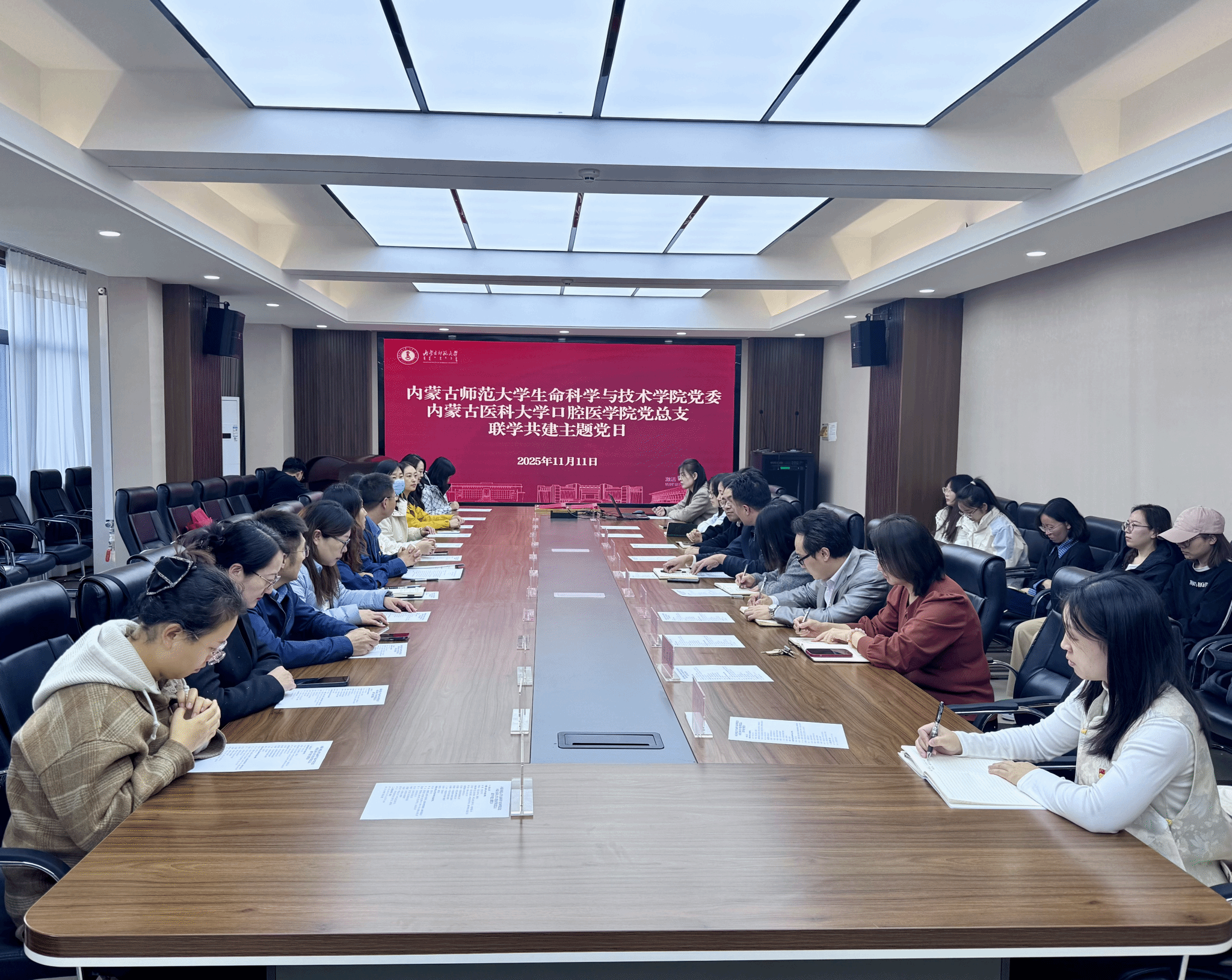 为深入学习贯彻党的二十届四中全会精神,强化基层党组织政治功能与组织功能,探索校际党建共建与学科融合新模式,11月11日下午,beat365平台官方网站与内蒙古医科大学口腔医学院开展联学共建主题党日活动。两院领导班子、党支部书记、科室负责人和部分党员师生代表参加活动。主题党日活动由苏小波主持。